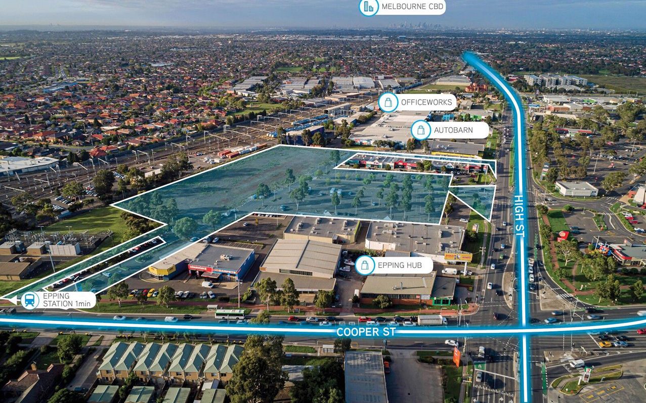 The land is positioned between the Epping train station and Epping Plaza, anchored by Woolworths, Coles, Costco and over 230 specialty shops.