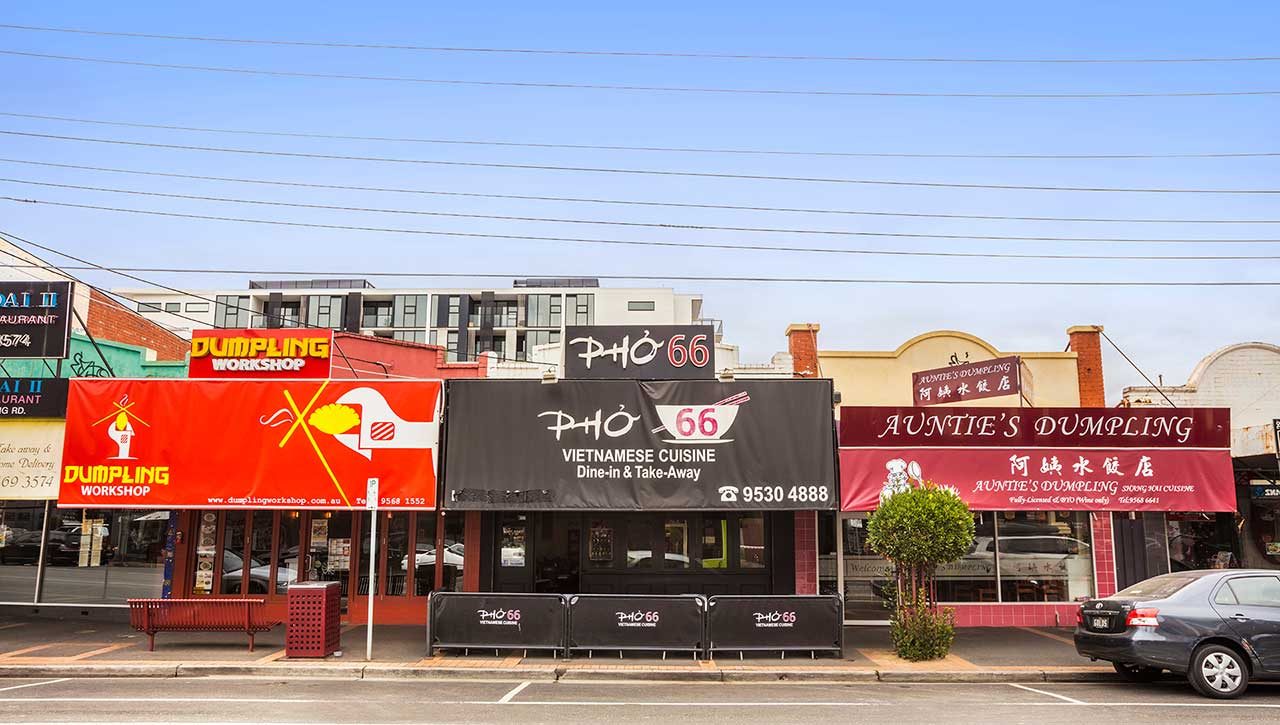 The sale price reflects a land rate of $15,800 per sqm. The property comprises a land area of 212sqm and a building area of 150sqm, and was sold with a 7 x 5 x 5 x 5-year lease in place to a Vietnamese restaurant trading as Pho 66 and returning $84,872 per annum plus outgoings and GST.